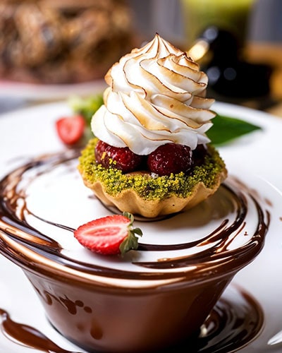 Treat yourself to an array of oven-fresh cakes, tarts, cookies, and pastries. Each dessert is prepared to balance flavor and presentation, perfect for an afternoon indulgence or a sweet end to your meal.